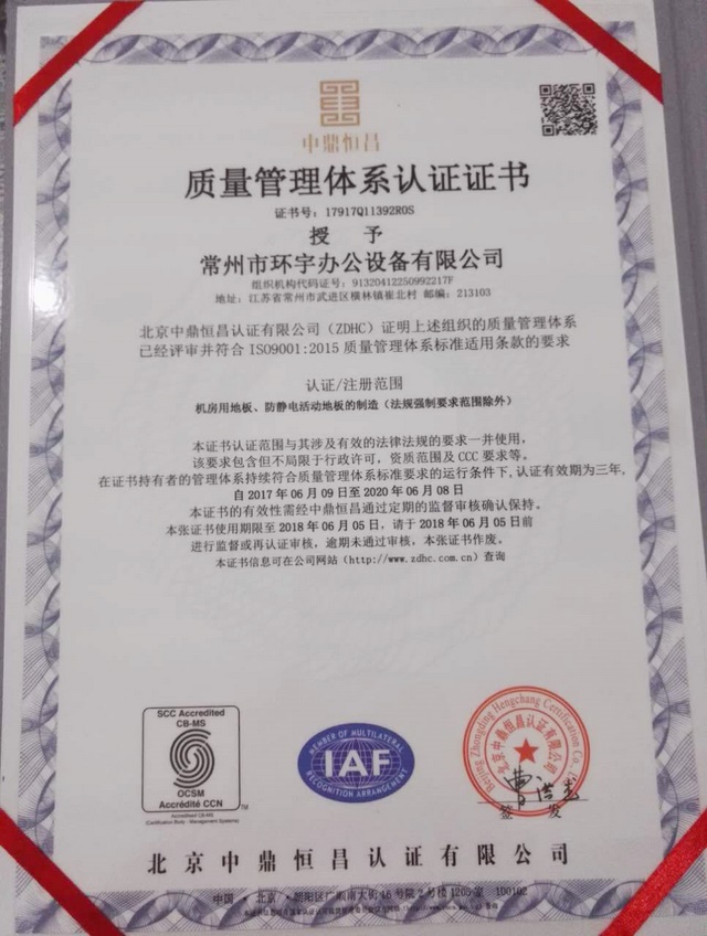 常州市環(huán)宇辦公設備有限公司位于常州市橫林鎮(zhèn)崔北工業(yè)園區(qū),公司成立于1994年。占地面積8000多平方米,是一家集生產(chǎn)、銷售、安裝為一體的機房地板制造企業(yè)。